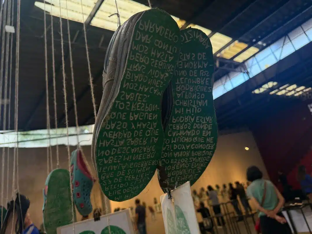 La exposición no se limita a México. Entre los zapatos también aparecen pares de El Salvador, Guatemala y Túnez, recordando que la desaparición forzada es un crimen internacional.