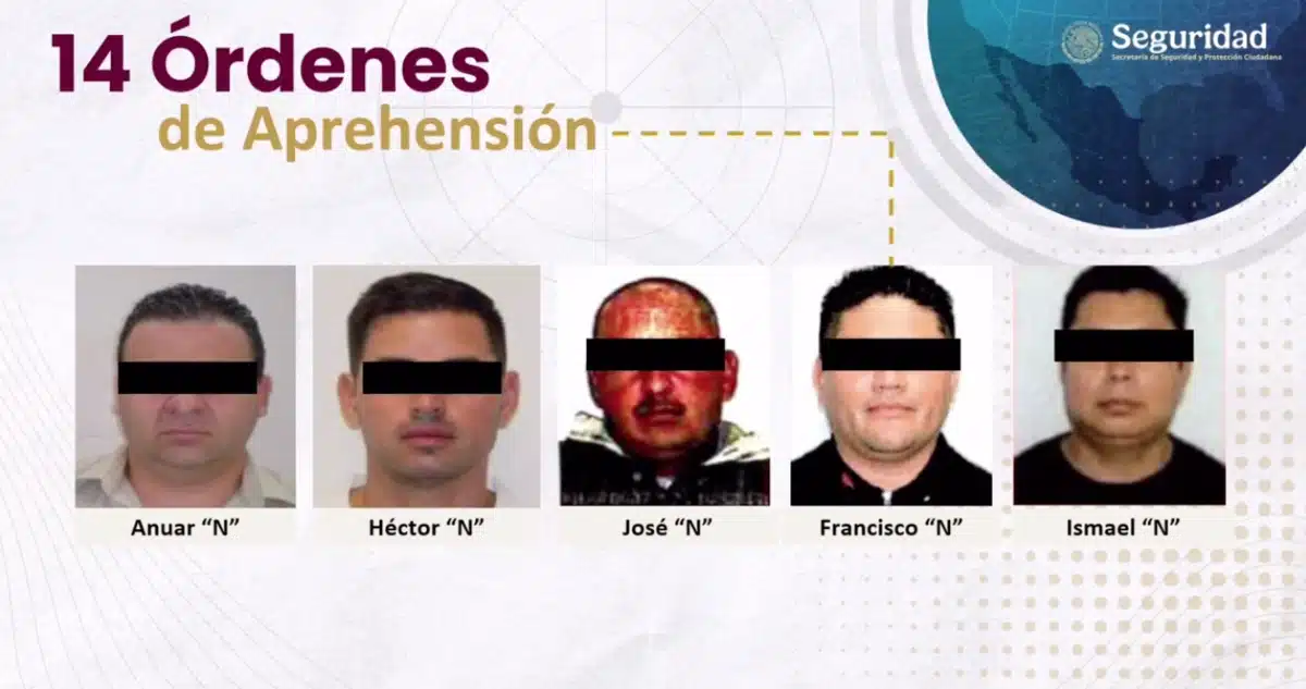 Según el Secretario de Seguridad y Protección Ciudadana, “con la información obtenida tras meses de trabajo de gabinete y campo, se integraron carpetas de investigación”; y “con la Fiscalía General de la República, se generaron los mandamientos judiciales correspondientes”, los cuales permitieron la aprehensión de las 14 personas.