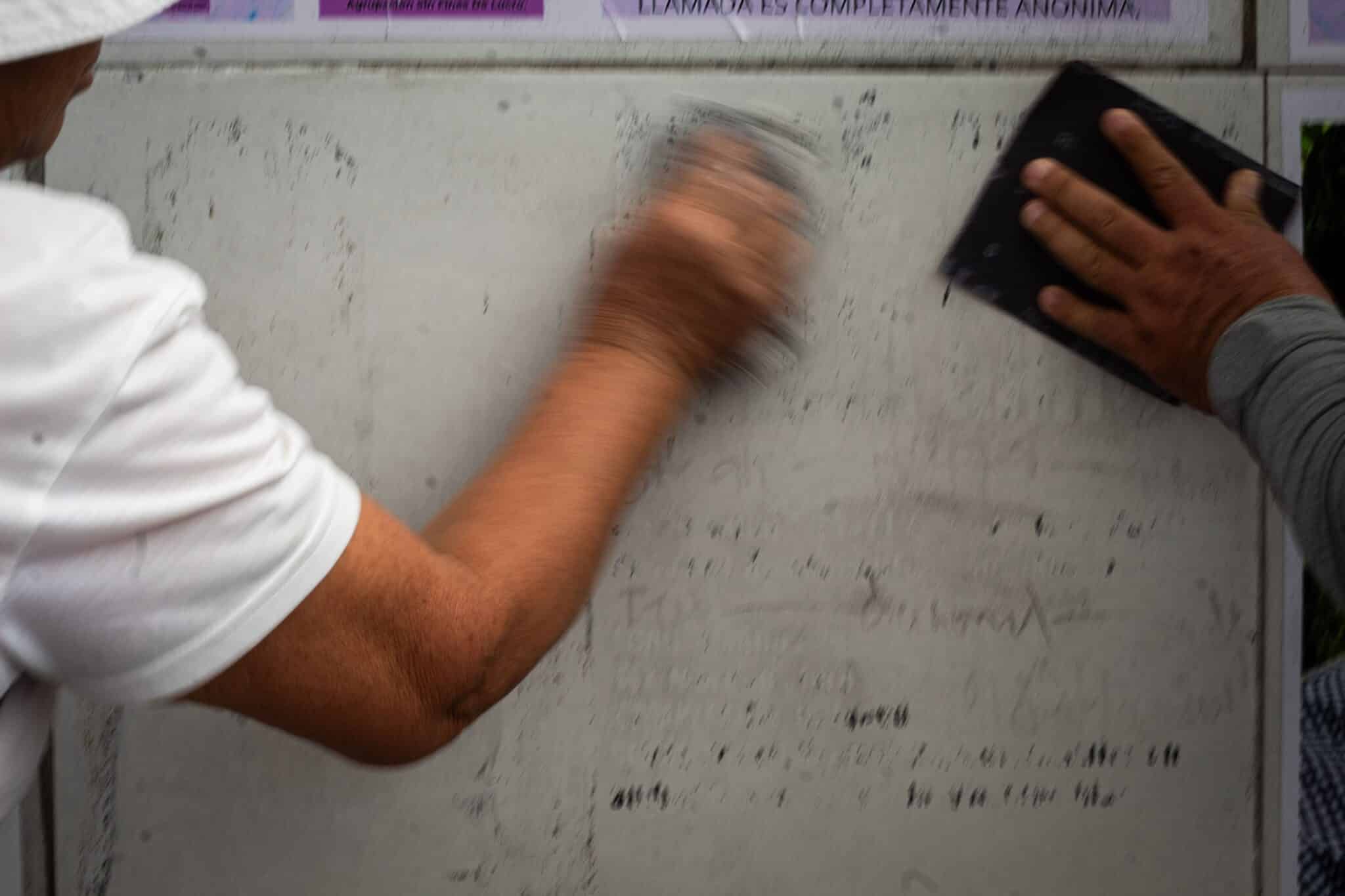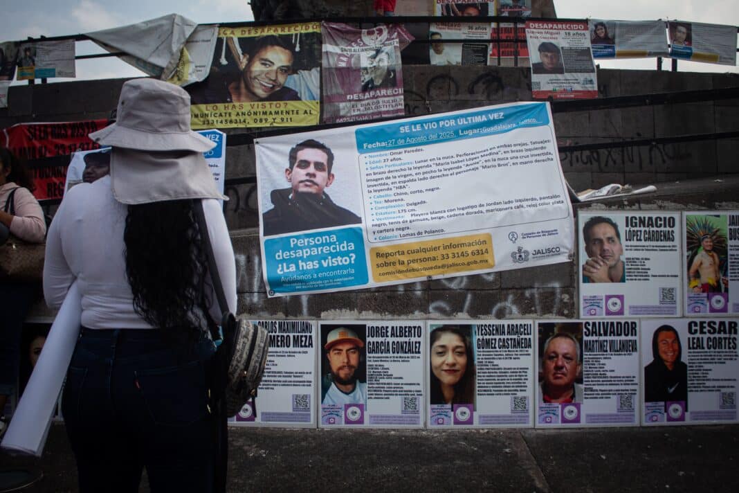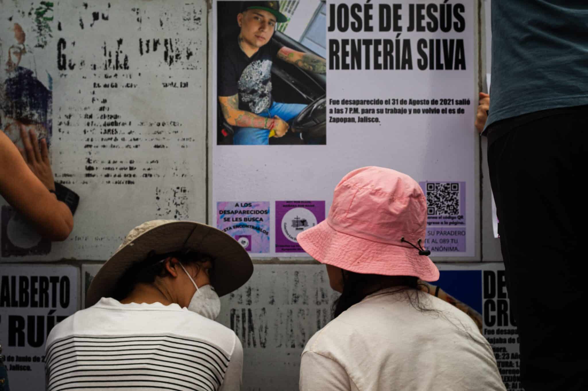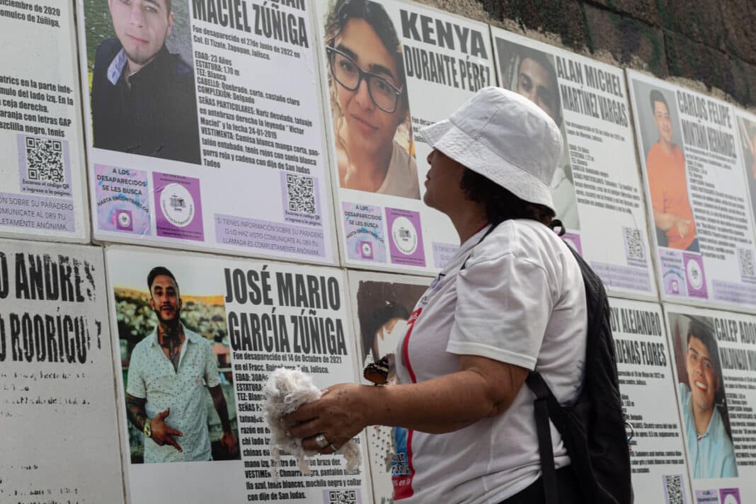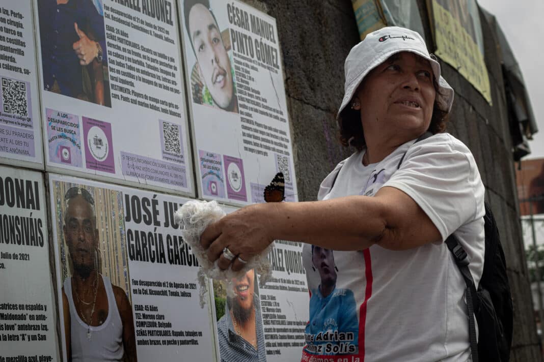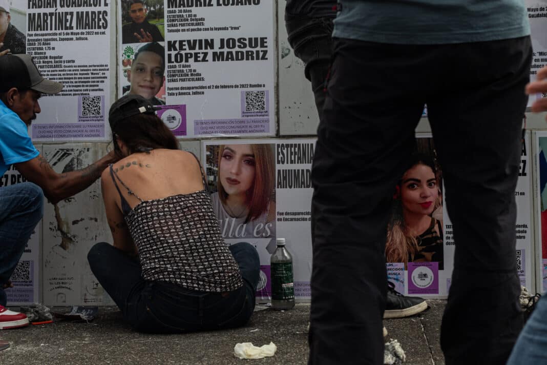 Familias buscadoras que integran el colectivo Luz de Esperanza se congregaron en la Glorieta de las y los Desaparecidos de Jalisco para renovar sus losetas de búsqueda, las cuales por las inclemencias del tiempo y el grafiti borraron los rostros y nombres de sus amores desaparecidos.