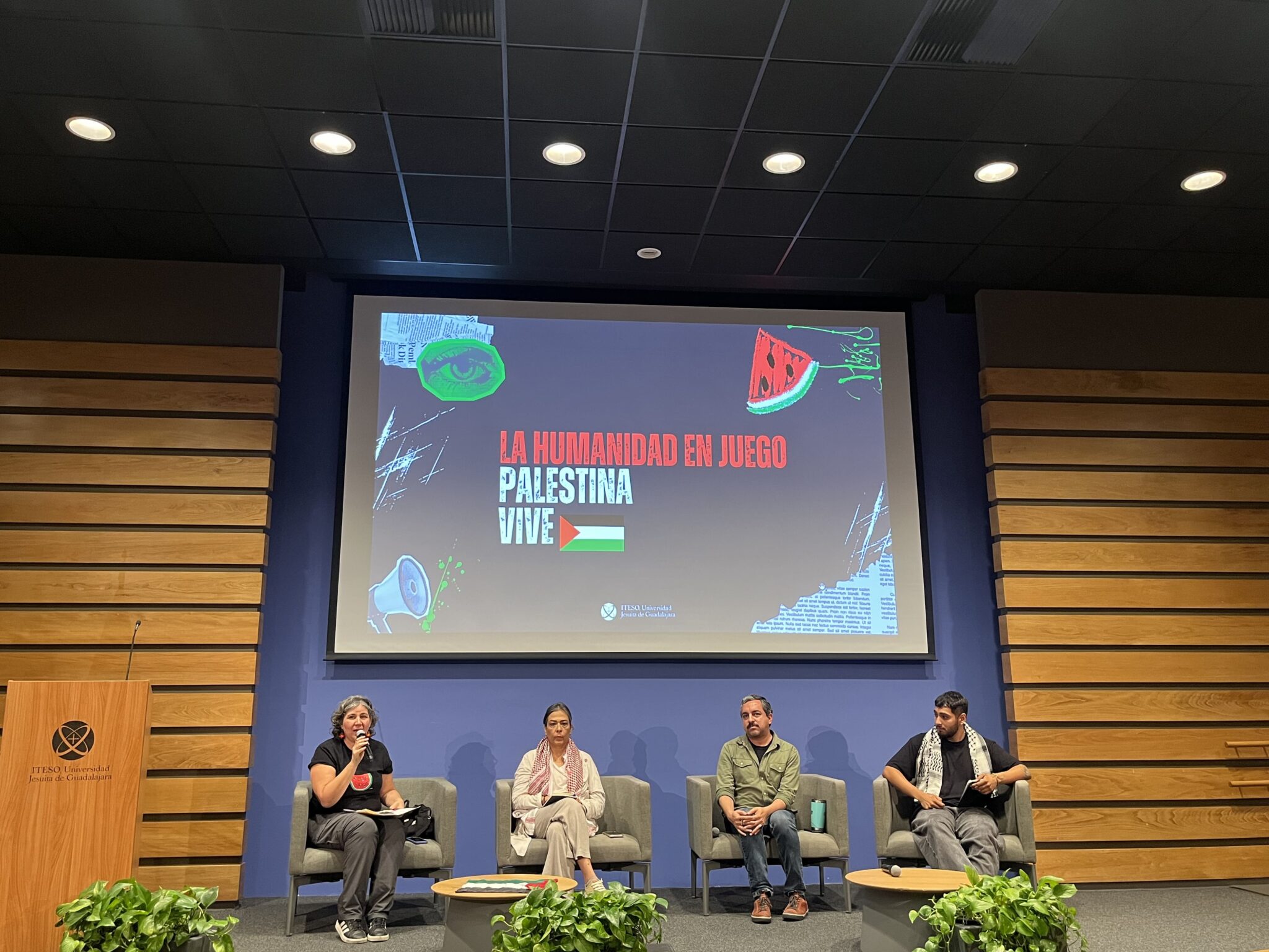 El evento “La humanidad está en juego: Palestina Vive” se llevó a cabo en el ITESO como un espacio de diálogo y organización convocado por el Comité de Solidaridad con Palestina de la universidad. En éls participaron académicos, activistas y colectivos como Moisés Garduño (UNAM), Dolores Pérez Lazcarro (Global Sumud Flotilla), integrantes del Comité de Solidaridad con Palestina del ITESO, así como voces de iniciativas ciudadanas de Guadalajara y de redes internacionales, con el objetivo de compartir análisis y propuestas frente a la emergencia humanitaria en Palestina.