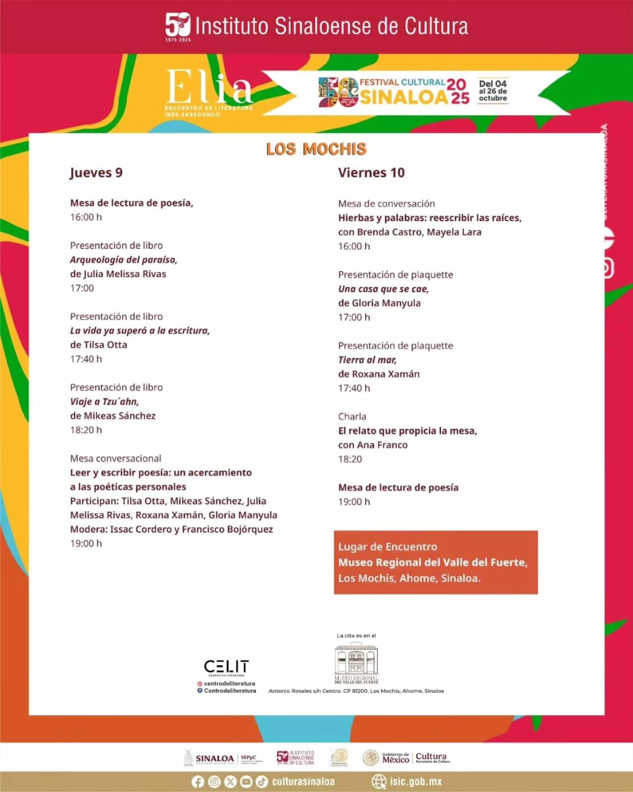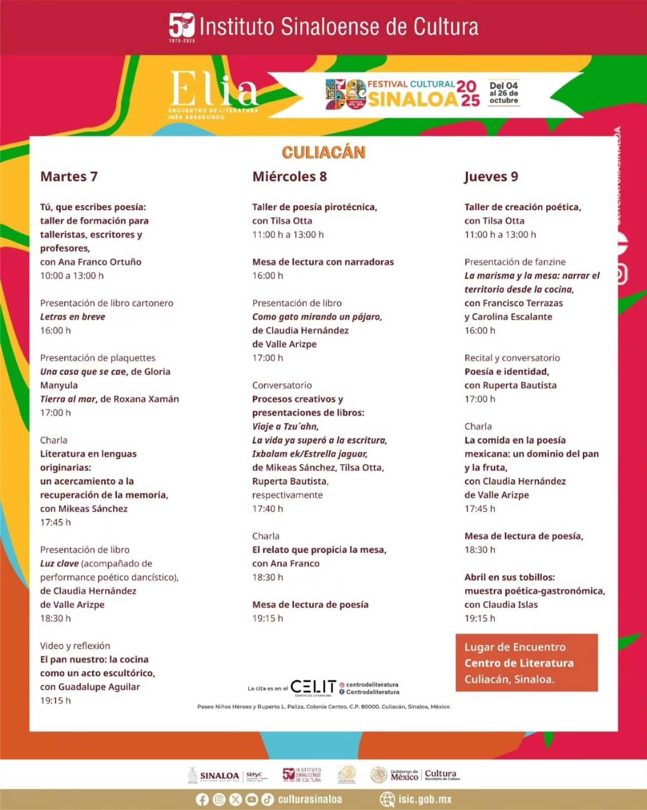 - El Centro de Literatura (CELIT) de Culiacán (7–9 de octubre)