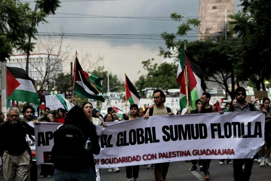 Por su parte, el Comité de Solidaridad con Palestina en Guadalajara, con Rosi Zúñiga, destacó las acciones que han impulsado en marchas, festivales, boicots y campañas de firmas para exigir que México rompa relaciones con Israel, además de articular su lucha con colectivos locales como madres buscadoras, feministas y defensores de derechos humanos.