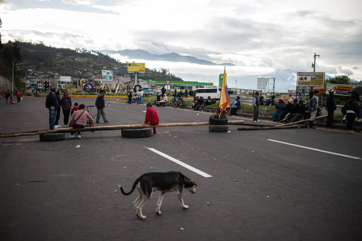 Manifestantes cerrando la carretera. Otavalo, 2022. Fotografía: Josué Araujo.