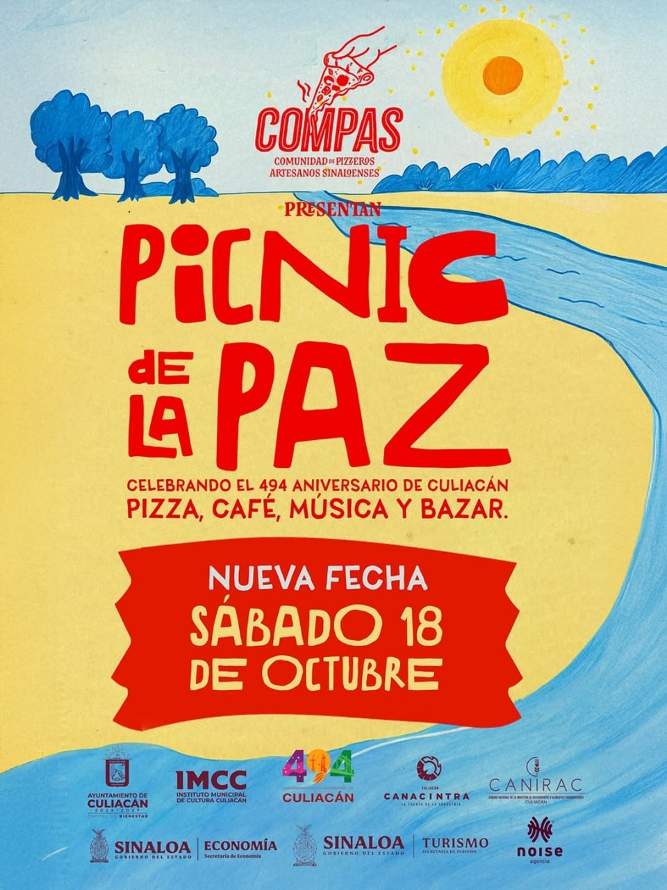 Culiacán, Sin.- La Comunidad de Pizzeros Artesanos de Sinaloa (COMPAS) invita a las familias culiacanenses a disfrutar del Picnic de la Paz, un evento que se llevará a cabo este sábado 18 de octubre, de 1:00 a 8:00 de la noche, en el Parque Las Riberas, sección El Bosquecito (entre Barco 74 y Paraguas).