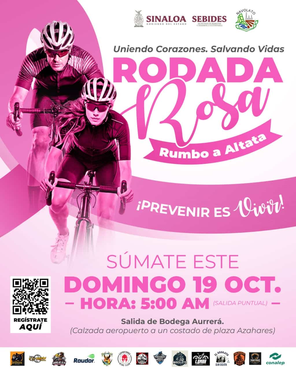 Culiacán, Sin.– En el marco del Día Mundial de la Lucha contra el Cáncer de Mama, el Gobierno de Sinaloa, a través de la Secretaría de Bienestar y Desarrollo Sustentable (SEBIDES), invita a la ciudadanía a participar en la Rodada Rosa 2025, que tendrá como destino el Malecón de Altata, municipio de Navolato, con el propósito de promover una cultura de prevención, empatía y solidaridad hacia quienes enfrentan esta enfermedad.