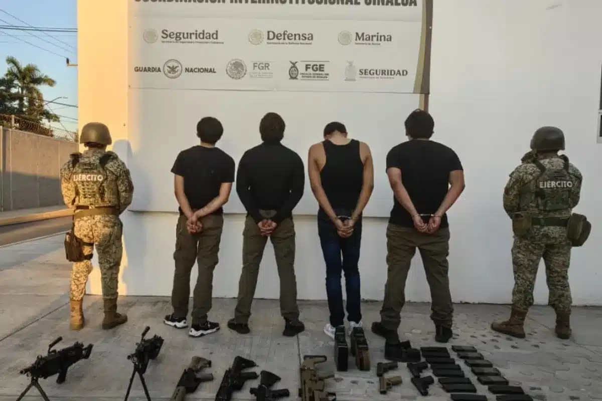 Culiacán, Sin.- Cuatro hombres, entre ellos un adolescente de 15 años y un exjugador de futbol profesional, fueron detenidos este viernes tras la ejecución de dos elementos de Tránsito Municipal en el fraccionamiento Rincón San Rafael, al poniente de Culiacán.