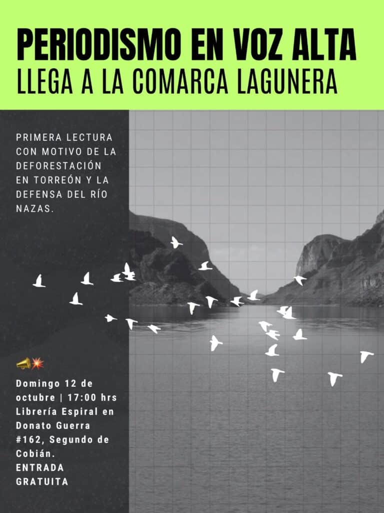 Las lecturas mensuales de Periodismo en Voz Alta ahora estarán en el norte, concretamente desde la Comarca Lagunera, una región conformada por municipios de Coahuila y Durango.