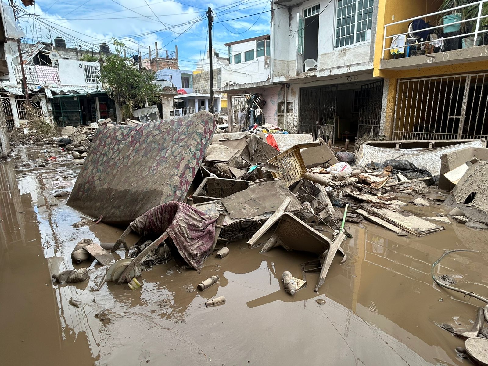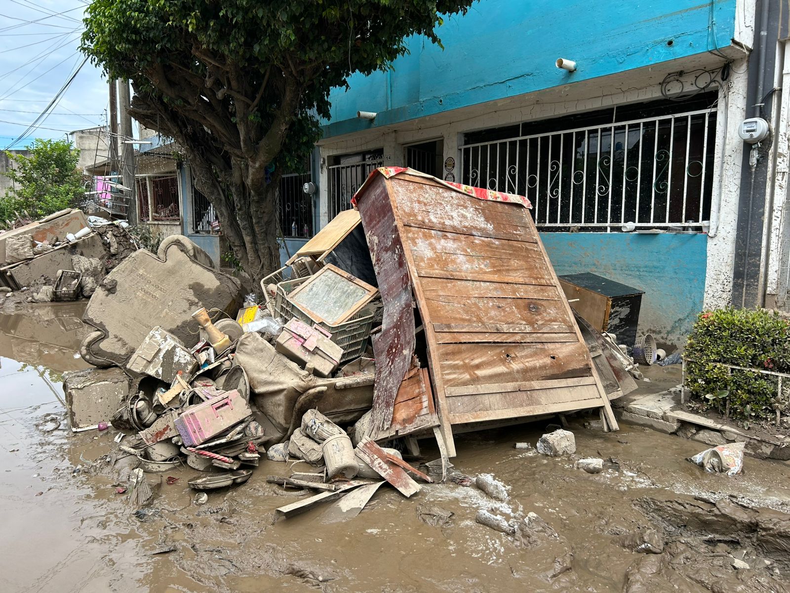 “Estamos lavando las paredes antes de que el lodo se haga costra. Con rastrillos sacamos el lodo. Tuvimos que arrastrar los muebles para la calle porque se le puede hacer polilla con la humedad, como el refrigerador, que ya se está mosqueando. Cualquier ayuda que pudieran dar o mandar es buena, todo aceptamos con el corazón porque no hay nada”, platica.