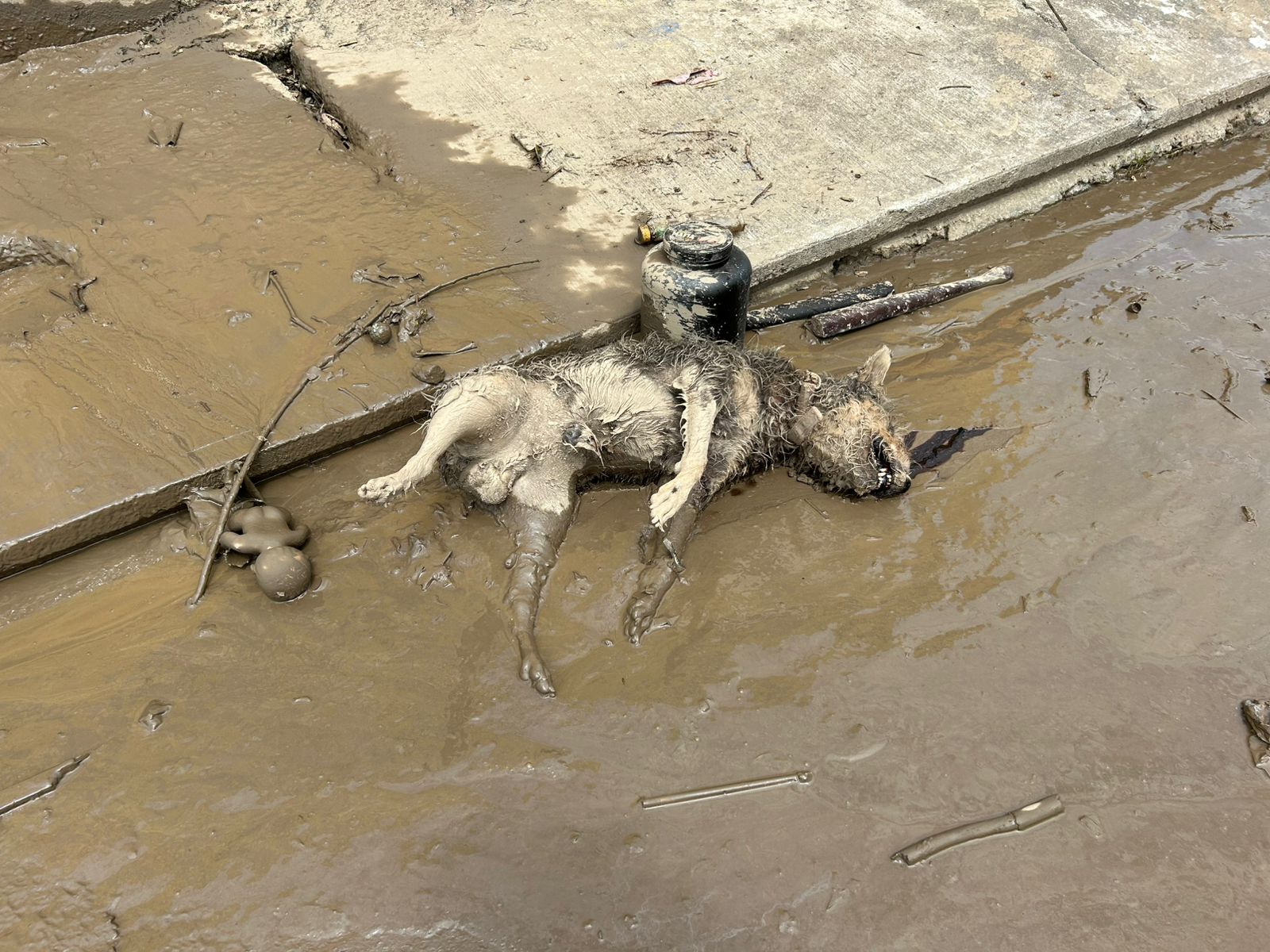 En las colonias más afectadas aún hay calles cubiertas de lodo, con anegaciones de hasta medio metro de altura, basura, manchas de crudo y cadáveres de animales cubiertos con cal, que en seis días los vecinos no han terminado de limpiar porque no se dan abasto.