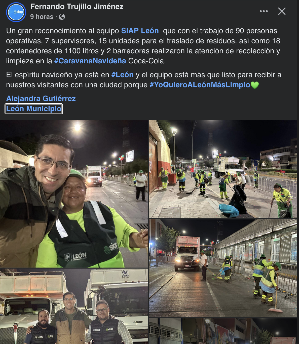 POPLab identificó al menos 151 publicaciones de autoridades locales promoviendo el evento con logos y elementos gráficos de Coca-Cola. En San Luis Potosí se transmitió en vivo por redes sociales oficiales. En León, el municipio pagó una producción especial a cargo de TV4, el canal público estatal.