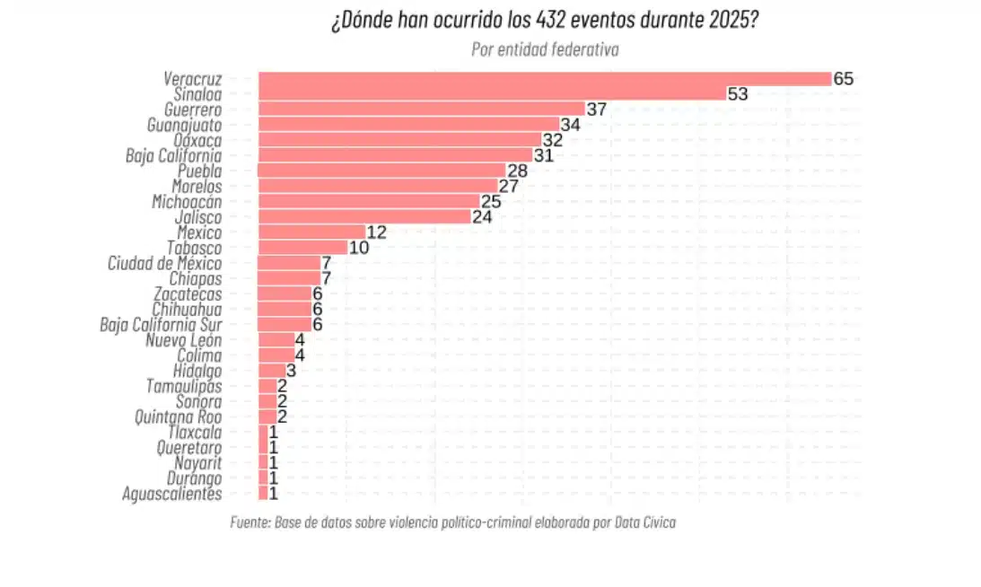 De septiembre de 2024 a septiembre de 2025, al menos 75 personas vinculadas a la administración pública han sido víctimas de secuestros, asesinatos, amenazas, atentados y desapariciones, de acuerdo a datos de Data Cívica, organización mexicana que utiliza datos y tecnología como herramienta para la defensa de los derechos humanos.