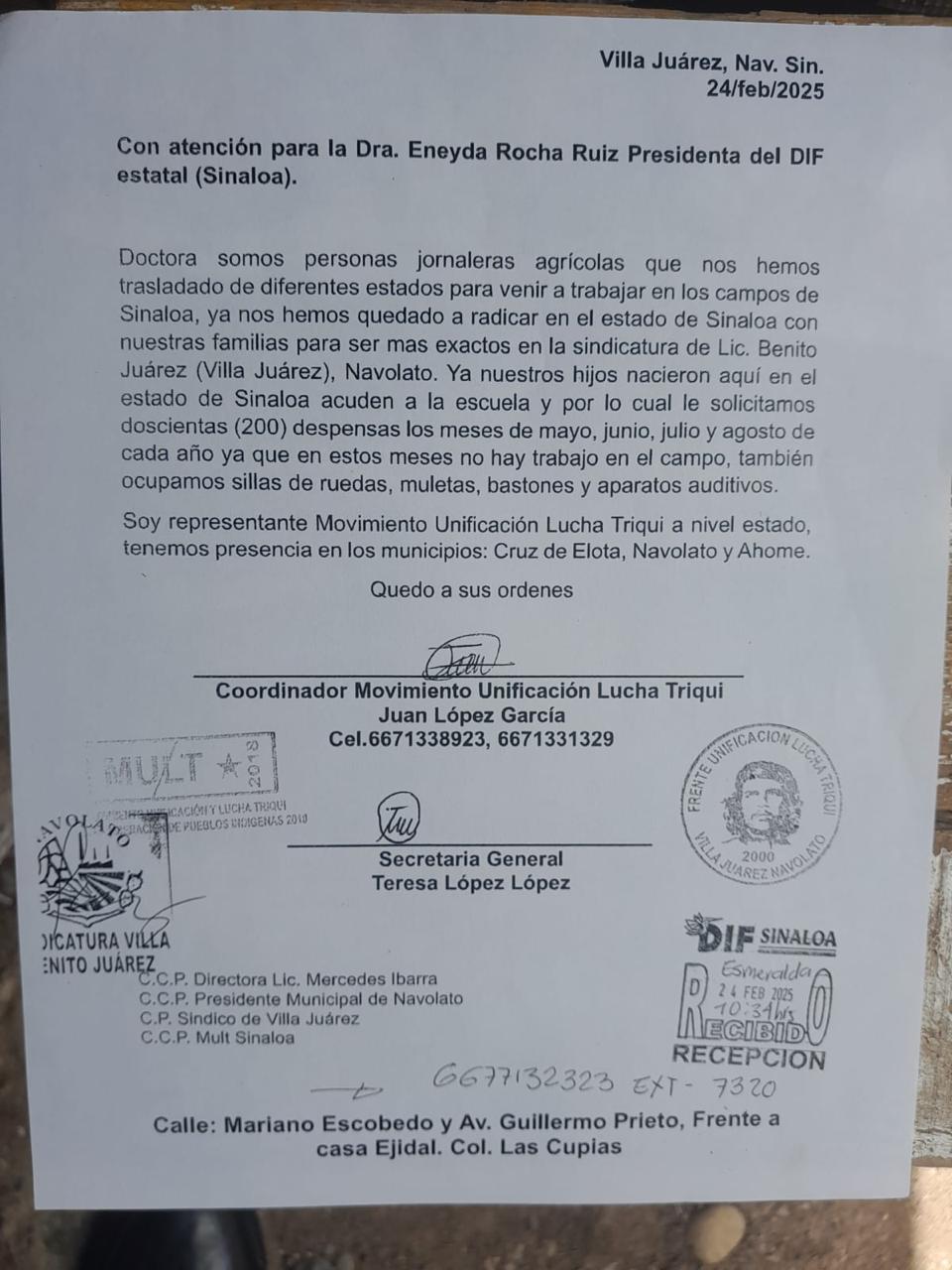 Villa Juárez, Navolato.- Jornaleros asentados en Villa Juárez continúan a la espera de los apoyos solicitados desde febrero al Sistema DIF Sinaloa y al Sistema DIF Navolato.