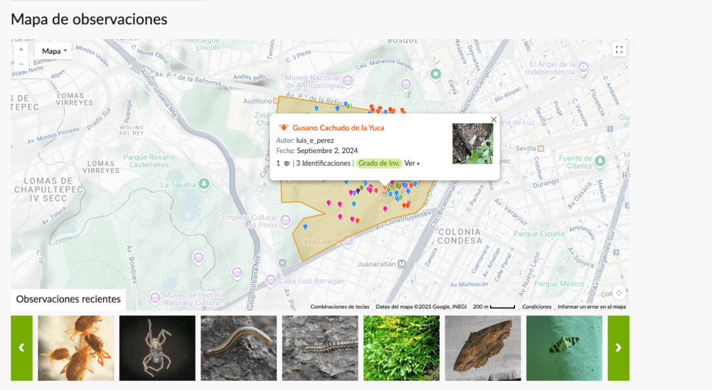 Fotografía de la página de INaturalist donde se registraron las observaciones del BioBlitz de 2024.