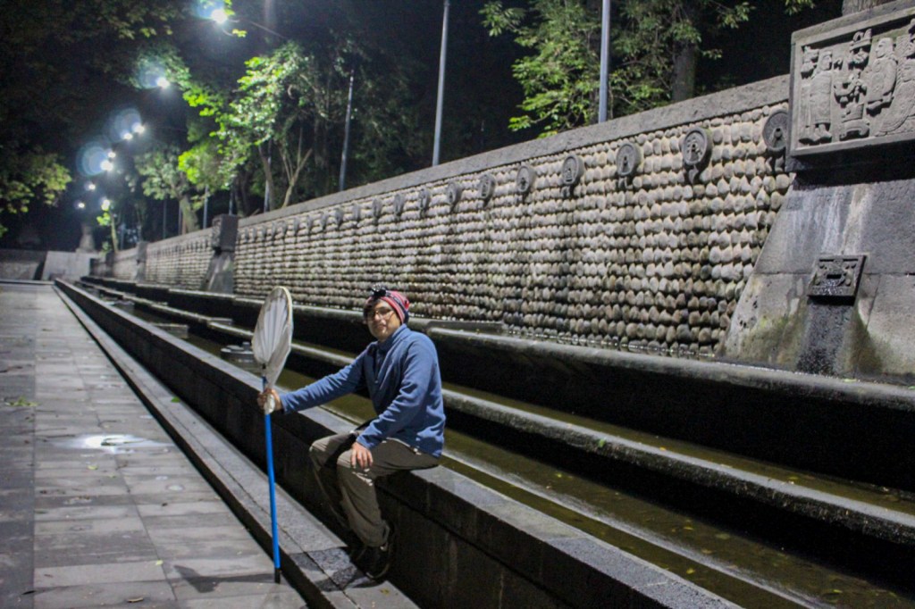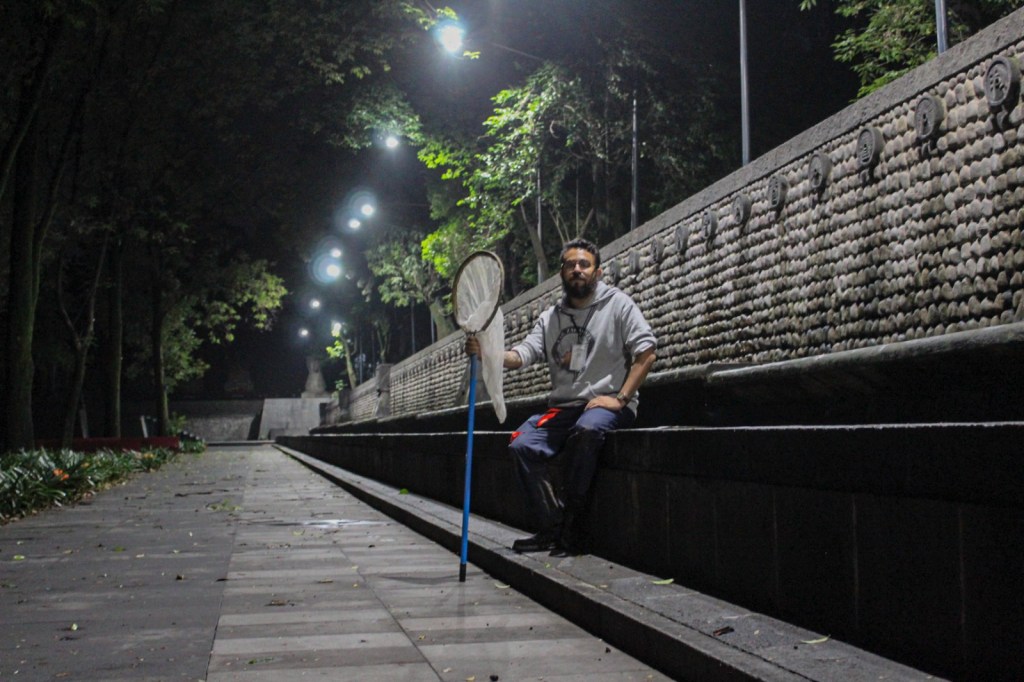 Edwin Domínguez, durante la búsqueda de luciérnagas en Chapultepec. Foto: cortesía Ishwari Gutiérrez