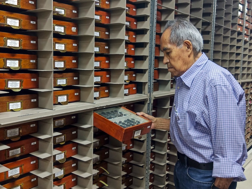 El doctor Santiago Zaragoza Caballero revisa la Colección Nacional de Insectos, del Instituto de Biología de la UNAM. Foto: cortesía Edwin Domínguez