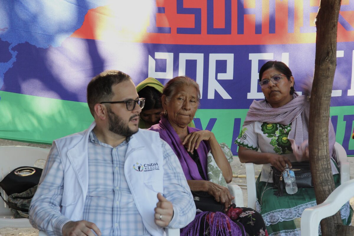 Y la otra parte, los integrantes de la Caravana, quienes forman parte de la Asamblea de Pueblos del Istmo en Defensa de la Tierra y el Territorio; los pueblos originarios mazahua y otomí de San Francisco Xochicuautla, San Lorenzo Huitzizilapan y Santa Cruz Ayotuxco, del Estado de México y la Ciudad de México y la organización chontal, agrícola y ganadera de El Coyul de Tehuantepec, Oaxaca.