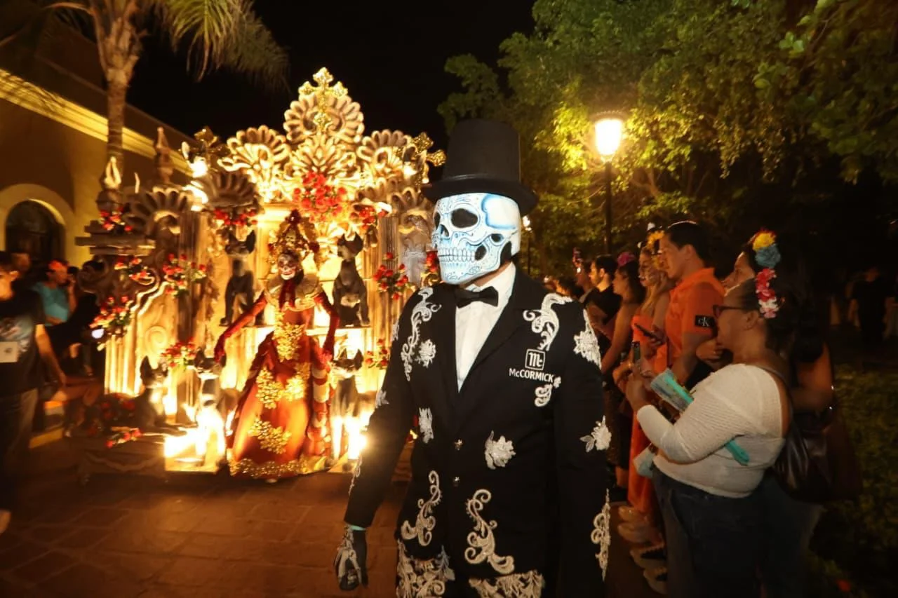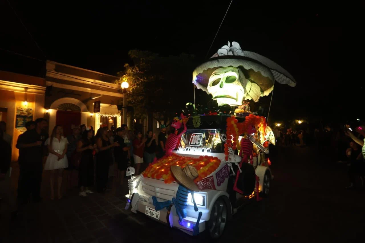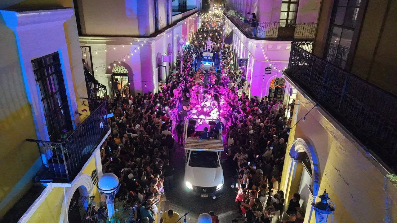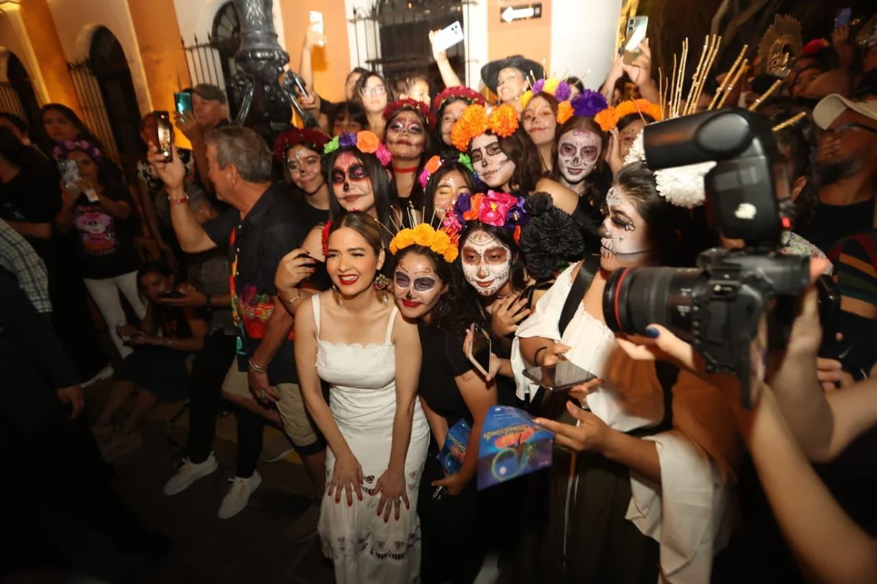 Al concluir su recorrido por los recintos culturales, Estrella Palacios se unió a la tradicional callejoneada, que recorrió las calles del Centro Histórico y los alrededores de la Plazuela Machado, donde se instalaron 14 altares alusivos a distintos personajes y temáticas del Día de Muertos. La música, las catrinas, los colores y la participación de cientos de asistentes convirtieron la noche en una verdadera fiesta para los sentidos.