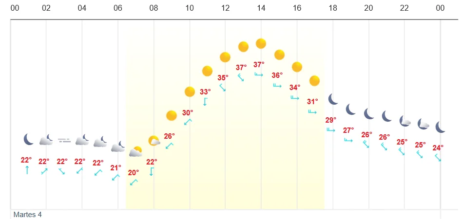 El pronóstico del Servicio Meteorológico Nacional indica que este martes continuarán las condiciones de calor en Los Mochis, con temperaturas máximas que podrían alcanzar los 37 °C durante la tarde. Ya por la noche, el ambiente se tornará templado y agradable, con valores que descenderán hacia los 20 °C, acompañados de un cielo mayormente despejado.