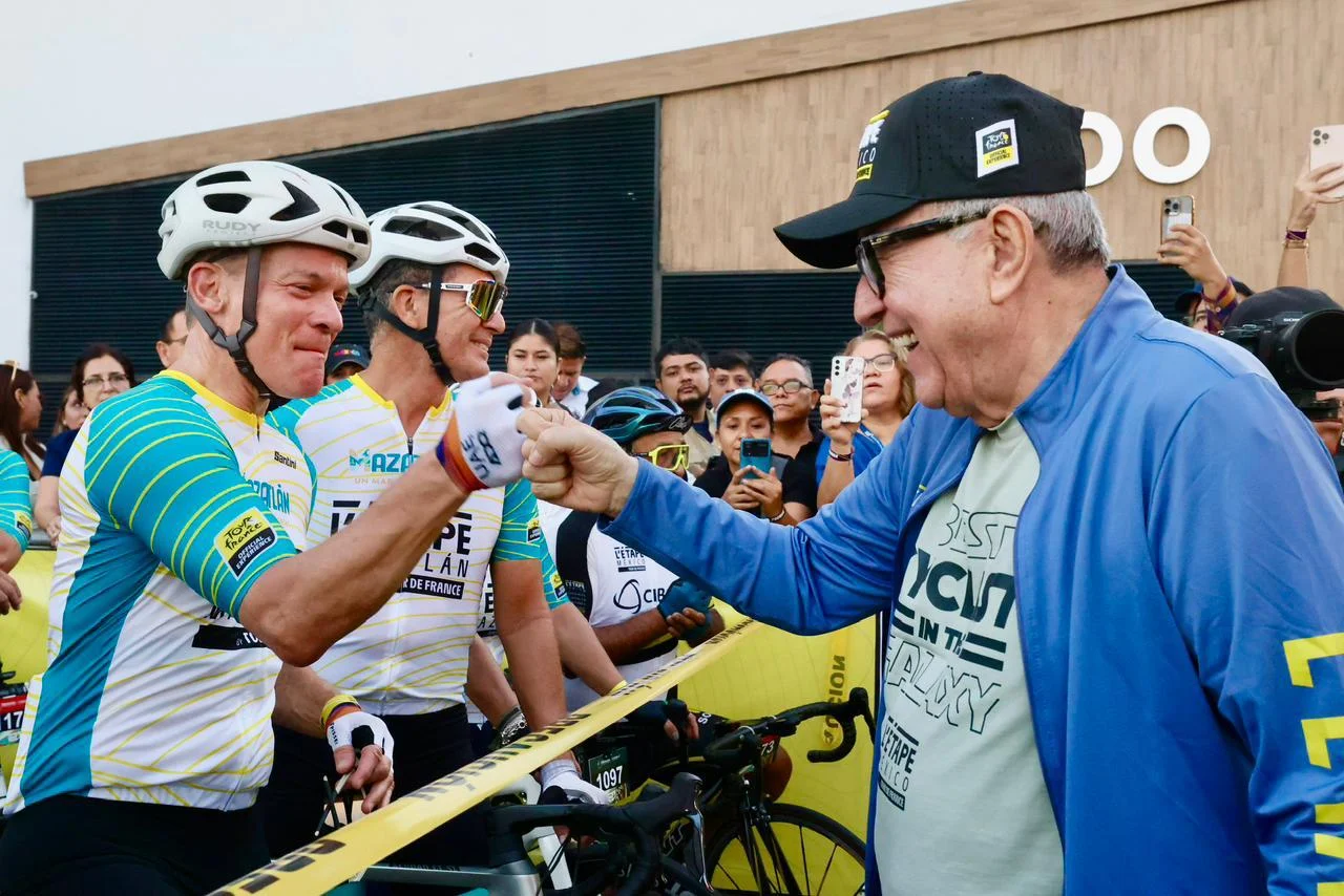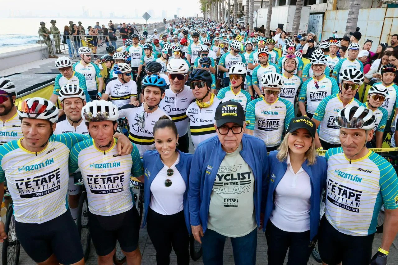 Mazatlán Sinaloa.- Teniendo como marco las bellas playas del puerto mazatleco, el gobernador Rubén Rocha Moya, junto a los embajadores de L’Étape Mazatlán, los ex ciclistas profesionales españoles Joseba Beloki Aguirrezabalaga, Pedro Horrillo y Fermín Trueba, dio el banderazo de arranque de la carrera ciclista más famosa del mundo L’Étape Mazatlán by Tour de France 2025, que reunió a más de 1200 ciclistas profesionales y amateurs que vivieron la mítica experiencia del Tour de France.
