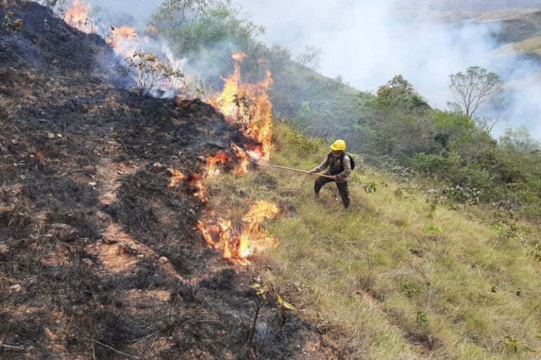 Los bomberos en Bolivia combaten el fuego en el parque Noel Kempff Mercado, en agosto de 2025. Foto: cortesía Ministerio de Medio Ambiente y Agua