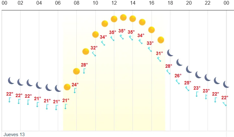 La sensación térmica será elevada debido a los niveles de humedad, que se estiman en un promedio del 42 por ciento, lo que provocará una ligera sensación sofocante.