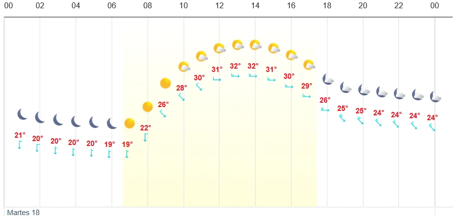La sensación térmica será elevada debido a los niveles de humedad en el clima, que se estiman en un promedio del 54 por ciento, lo que provocará una ligera sensación sofocante. Por otro lado, los vientos se mantendrán suaves, con rachas de apenas 3 kilómetros por hora, una brisa débil que poco hará para mitigar la sensación térmica durante el aumento de las temperaturas.