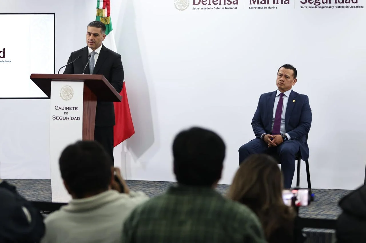 En conferencia de prensa, García Harfuch y Carlos Torres Piña, Fiscal de Michoacán, presentaron avances en la investigación, misma que dio como resultado la captura de Jorge Armando “N” alias El Licenciado, en Morelia, tras un operativo en conjunto con la SEDENA, SEMAR, Guardia Nacional, Fiscalía y autoridades de seguridad locales.