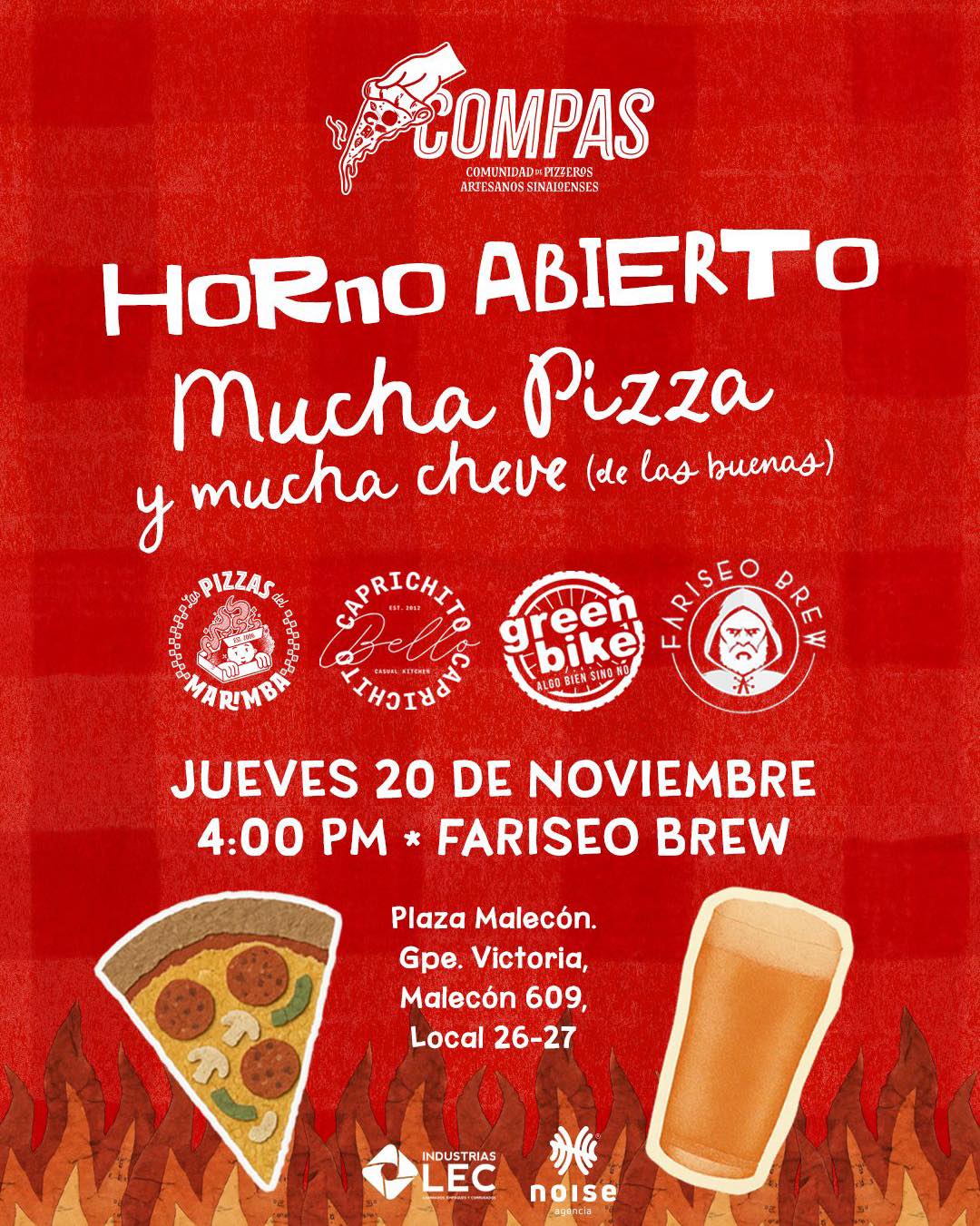 Culiacán, Sinaloa.- Este jueves 20 de noviembre, la Pizza Culiacán toma protagonismo durante un nuevo Horno Abierto, organizado por el colectivo COMPAS PIZZEROS.