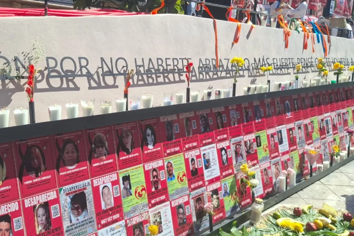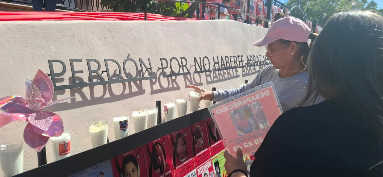 Culiacán, Sinaloa.- En Culiacán, el macetero de concreto ubicado a un costado de la Catedral se ha convertido en un símbolo de memoria, dignidad y exigencia para las familias que buscan a sus desaparecidos, quienes este viernes 21 de noviembre, develaron un mural llamado “Perdón por no haberte abrazado más fuerte, pensé que te volvería a ver”, compuesto por 222 azulejos con fichas de búsqueda.