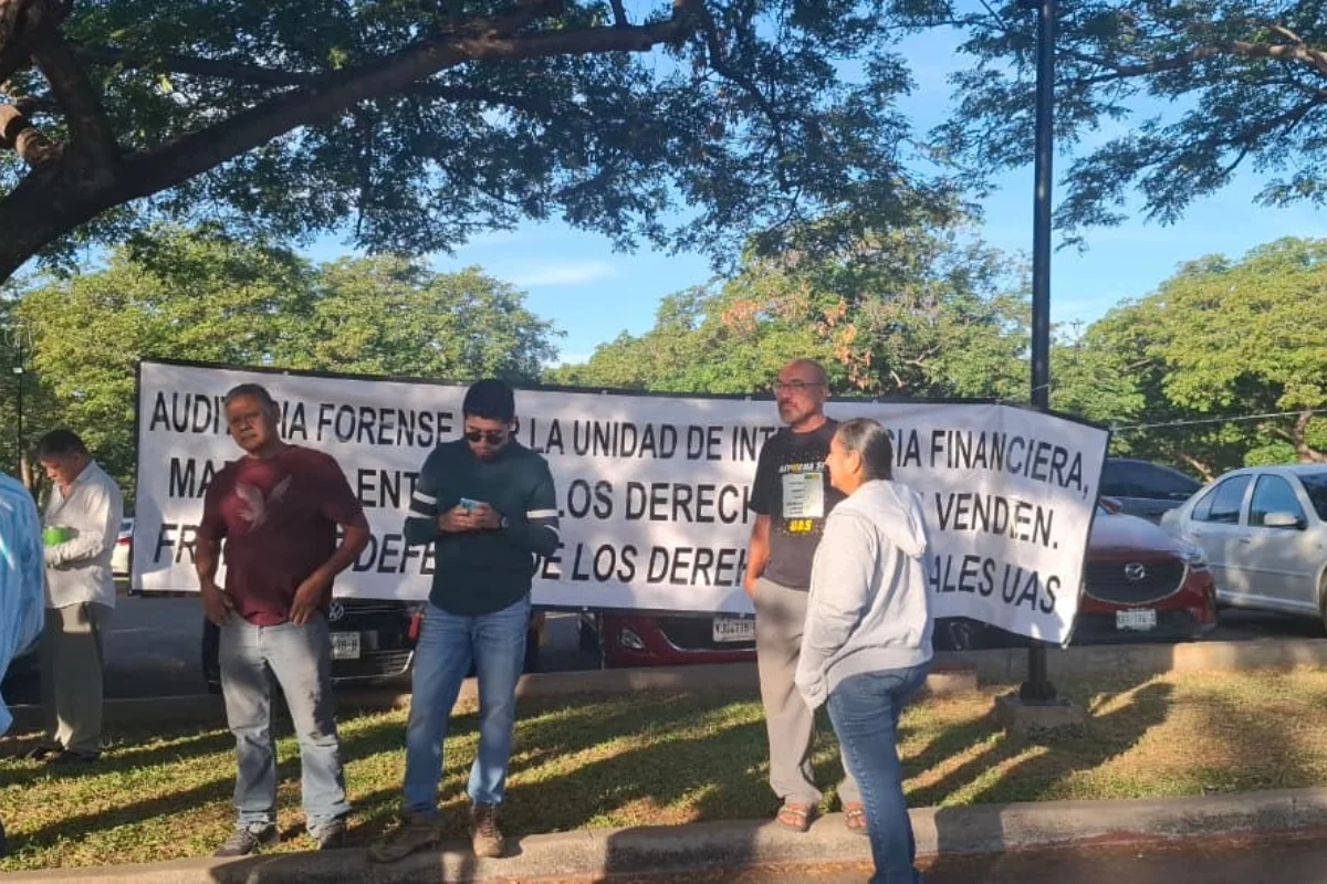 Mientras que, en la entrada de Ciudad Universitaria de la UAS, decenas de trabajadores activos y jubilados se concentraron para alzar la voz en respaldo del rector Jesús Madueña Molina y el plan de reingeniería financiera que también ha sido apoyado por el gobierno del Estado, un grupo más pequeño de trabajadores protestaron con lonas en mano, a un costado del recinto universitario, en el estacionamiento de Jardín Botánico.