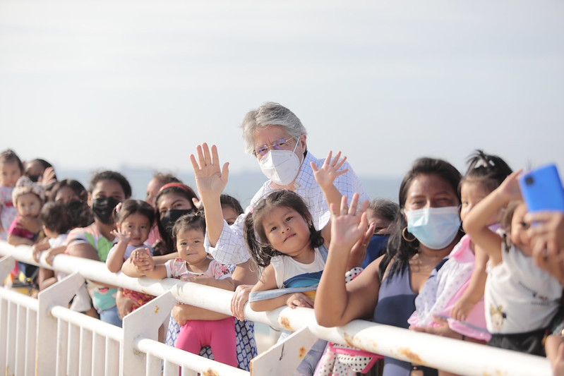 Encuentro con madres de familia. Expuso el trabajo que hacen las instituciones del estado para erradicar la desnutrición. Ballenitas, Santa Elena. Febrero 2022. Foto: Presidencia de la República