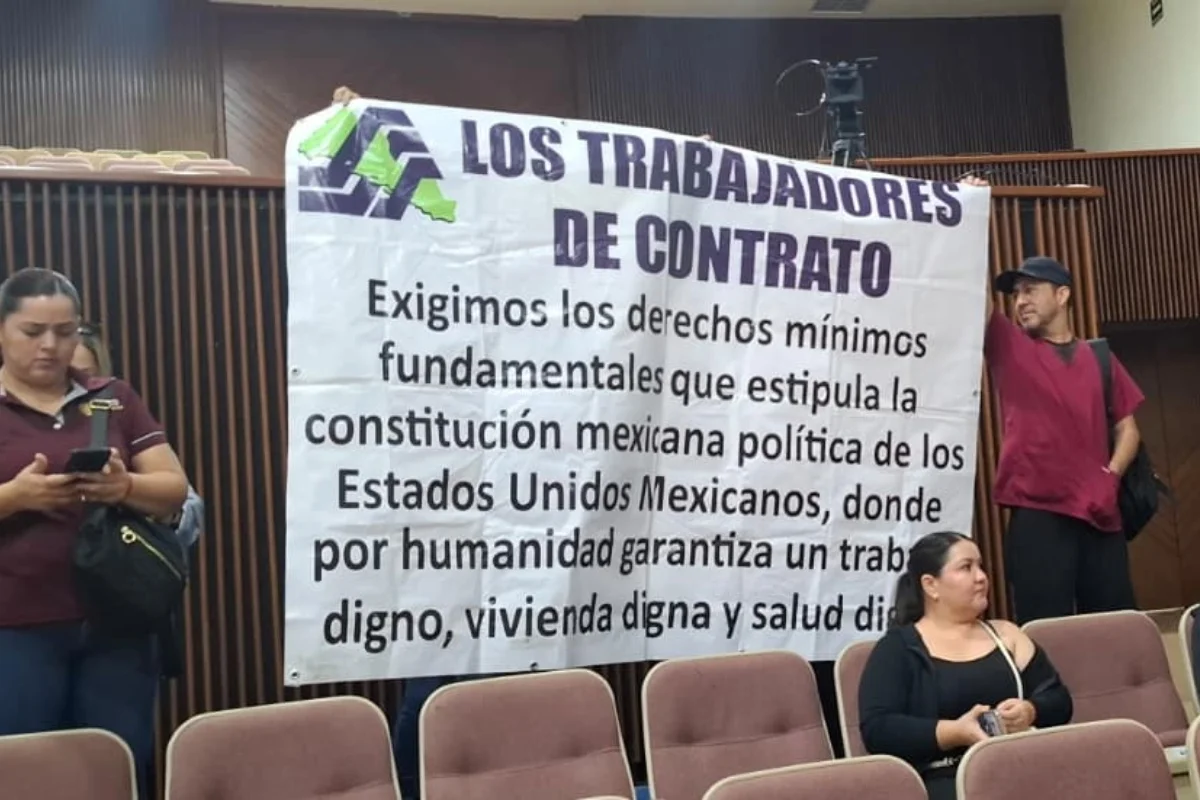 Este martes 16 de diciembre, Alonso y un grupo de trabajadores del sector salud de contrato se manifestaron en el Congreso del Estado para denunciar irregularidades en la entrega de bases y hacer un llamado de justicia laboral a las autoridades.