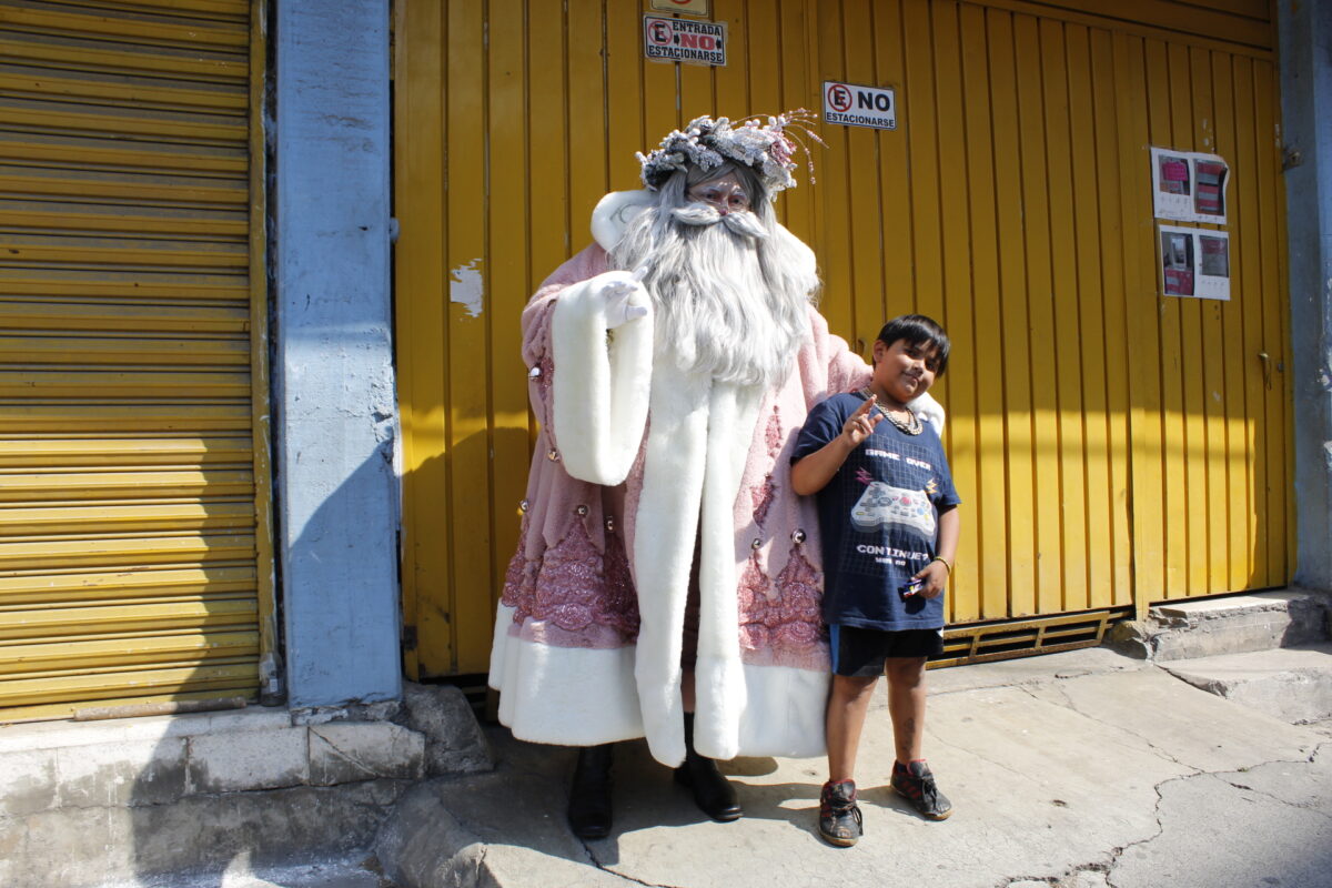 “Yo crecí en este barrio y soy cuarta generación de familia de comerciantes de La Merced. Mi abuela cada 11 de diciembre hacía una misa en honor a la Virgen de Guadalupe y cocinaba tamales con el guardadito que iba juntando durante el año para compartir con toda la comunidad de vecinos, sin importar las diferencias. Entonces, esa semillita es un poco resultado de lo que estoy haciendo ahora: compartir lo que hago con el barrio. Antes de salir a trabajar formalmente en el espacio público para la foto con el Santa, vengo a regalar un poco de esa buena energía con el barrio como forma de bendición”.
