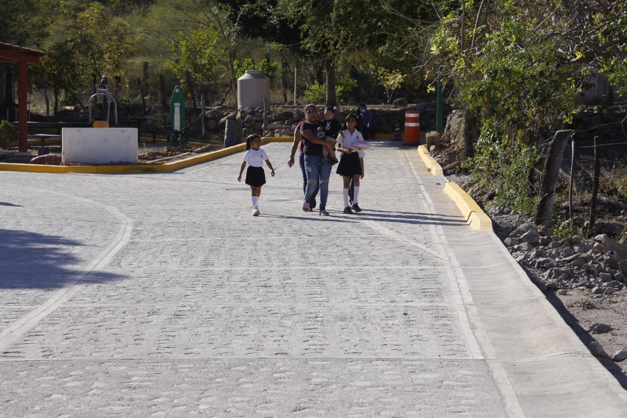 Ciénega de los Lara, Badiraguato, Sin.- En una intensa jornada de trabajo, el gobernador Rubén Rocha Moya visitó las comunidades La Ciénega de los Lara y El Palmar de los Ríos, donde inauguró la pavimentación de la calle principal de ambas poblaciones rurales, y en la cabecera municipal, la pavimentación de una importante calle que comunicará el bulevar de acceso con el malecón, obras en las que se invirtieron 16 millones 435 mil pesos.