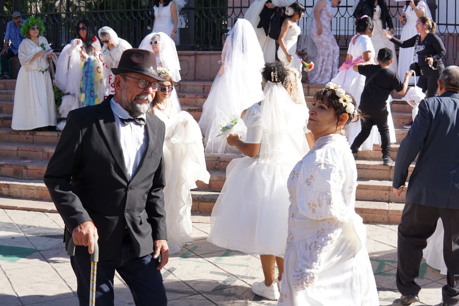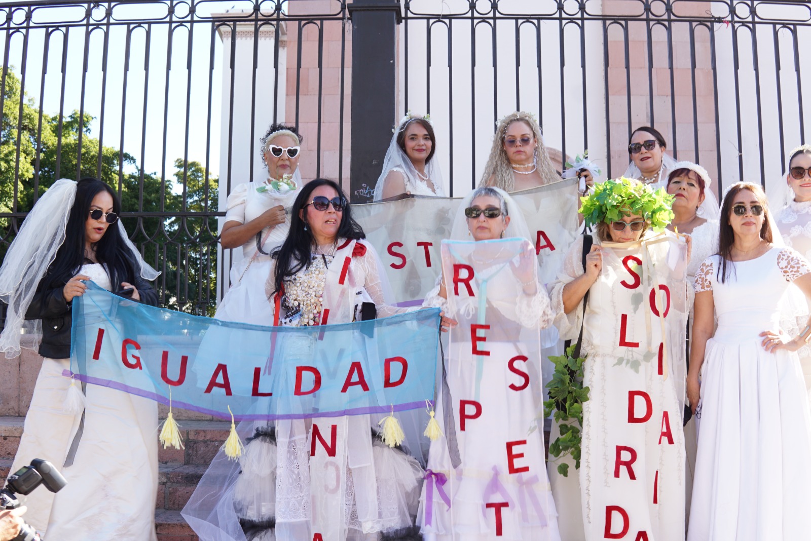 Culiacán, Sin.- Desde hace varios años, cada 22 de diciembre un grupo de mujeres se reúnen en las escalinatas de la catedral de Culiacán vestidas de novia. Son convocadas por la artista visual María Romero para realizar un recorrido por los edificios más emblemáticos del centro histórico.