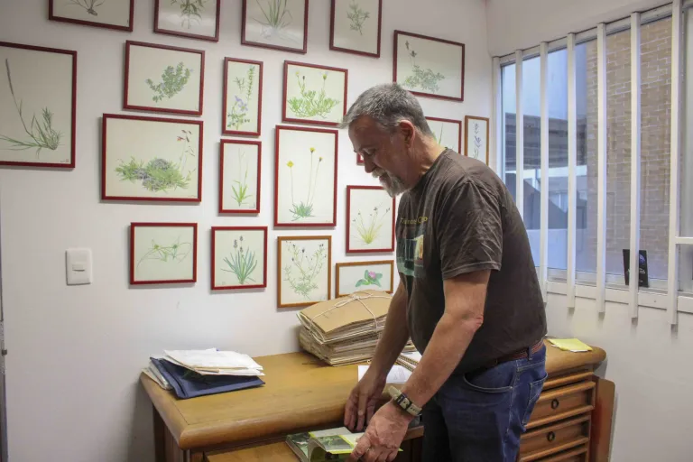 A lado de su escritorio se levanta una estantería que alberga libros de ecología, estadística y tesis de alumnos que lo han acompañado a lo largo de su trayectoria. Un acervo que refleja no solo su labor como investigador, sino también su pasión y dedicación al estudio de los pastizales.