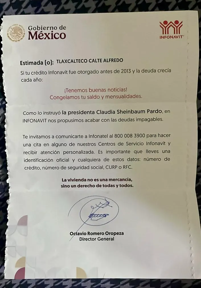 Este 2025, el Infonavit volvió a enviar a Alberto Tlaxcalteco una carta que le recuerda su deuda con la institución, aunque lleva desaparecido desde 2010. (Cortesía Marisol Ramírez Calte)