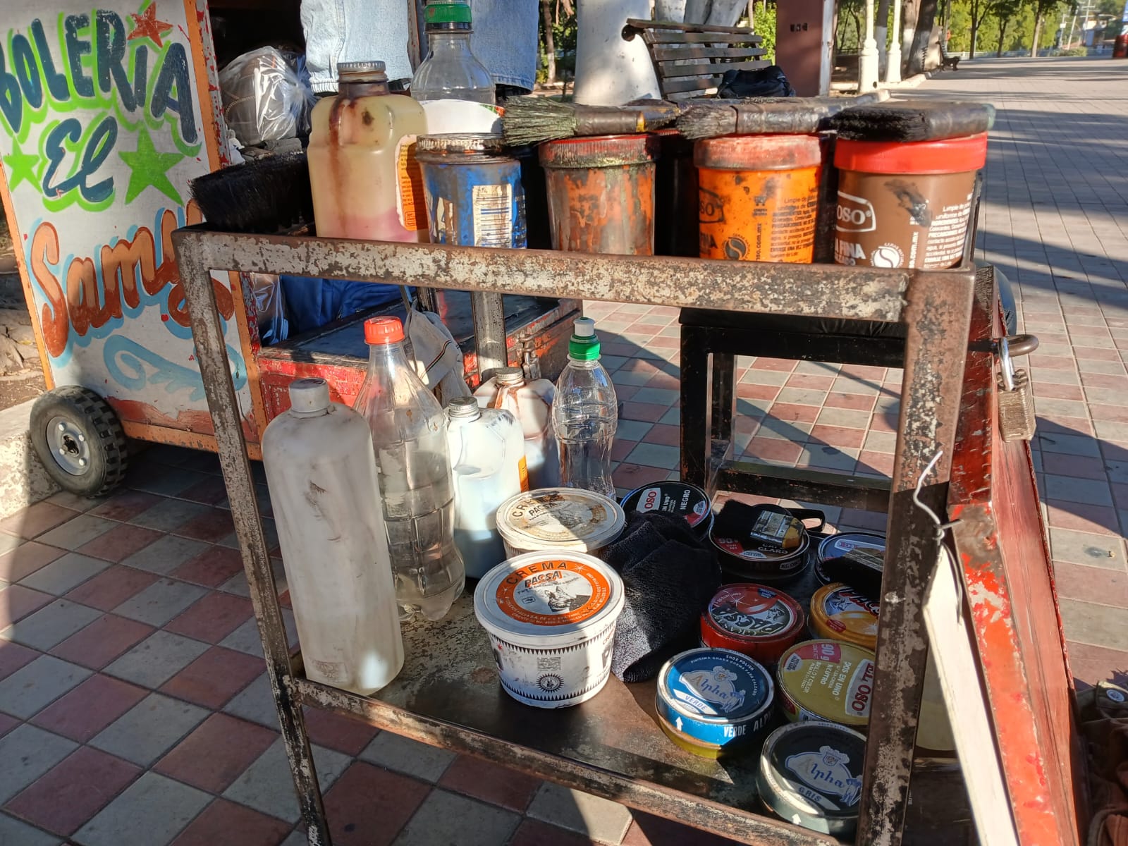 En el presente Samy, como lo conocen sus amigos y clientes, se considera un maestro boleador. Desde el 4 de agosto de 1999, recuerda con exactitud, está instalado en la Plazuela Rosales lustrando zapatos.