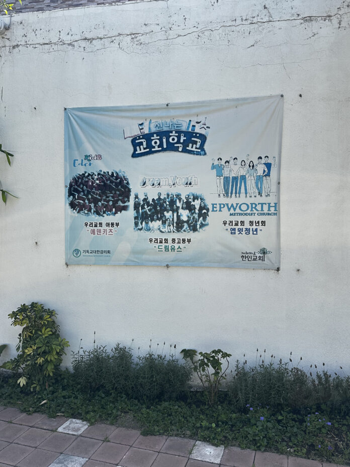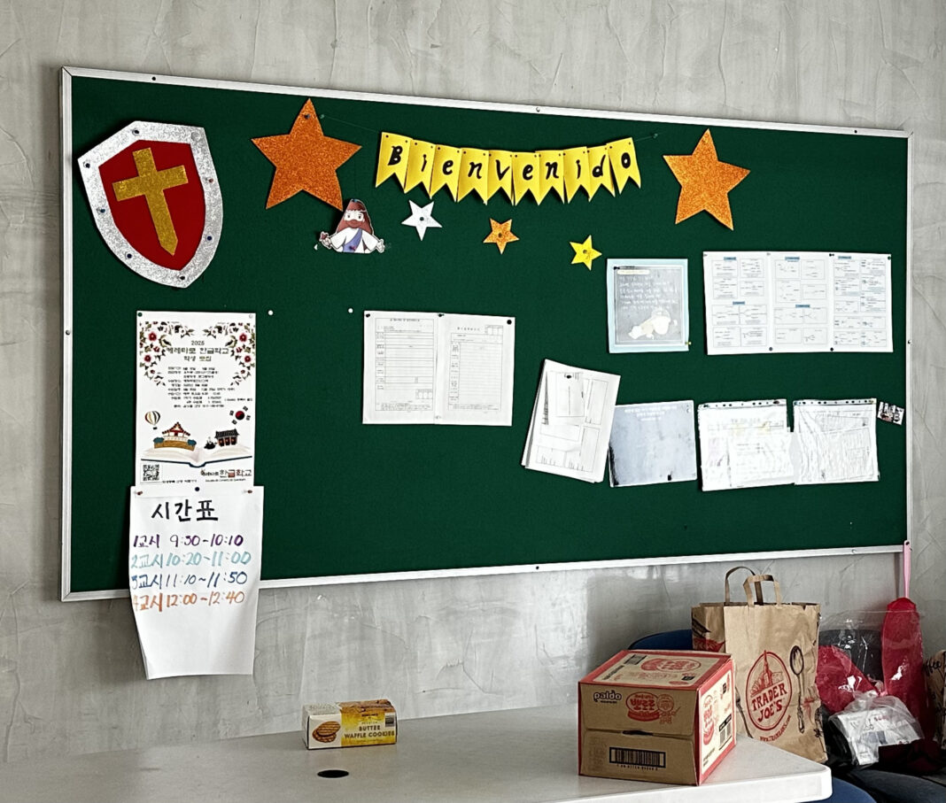La Escuela de Hangul de la Comunidad Coreana en Querétaro (게레따로 한글 하교) es un espacio donde las infancias coreanas aprenden sobre su país de nacimiento estando fuera de él. Consta de dos salones de clases, un amplio jardín en el que las y los niños juegan al llegar la hora del receso, un comedor y una pequeña iglesia cristiana. En el lugar se respira cariño y sobretodo respeto. Basta una reverencia o una sonrisa para sentirse bienvenida en el lugar, pese a no hablar el idioma ni tener ninguna conexión con Corea.
