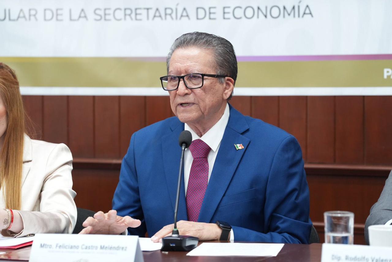 En su participación, el Secretario de Economía, Feliciano Castro Meléndrez, resaltó que en los cuatro años que van del gobierno de Rubén Rocha, se han aplicado políticas económicas con visión cercana a la gente, con una dinámica de puertas abiertas y con presencia permanente en todo el territorio estatal.