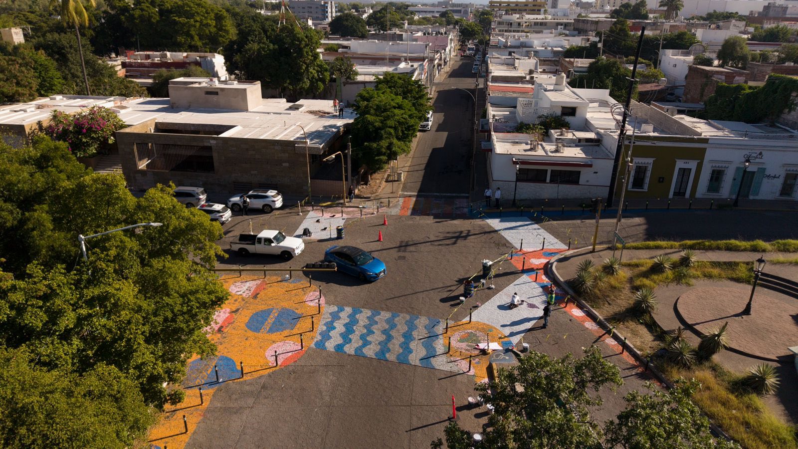 Culiacán, Sin.- El Instituto Municipal de Planeación Urbana (IMPLAN) y el Ayuntamiento de Culiacán, en coordinación con MAPASIN y Vamos Pintando, realizaron el proyecto Pasos por la Paz, una intervención artística y de infraestructura en la calle Rafael Buelna, con el objetivo de mejorar las condiciones de movilidad y seguridad vial para peatones y ciclistas, así como disminuir la velocidad vehicular y reducir los riesgos de accidentes.