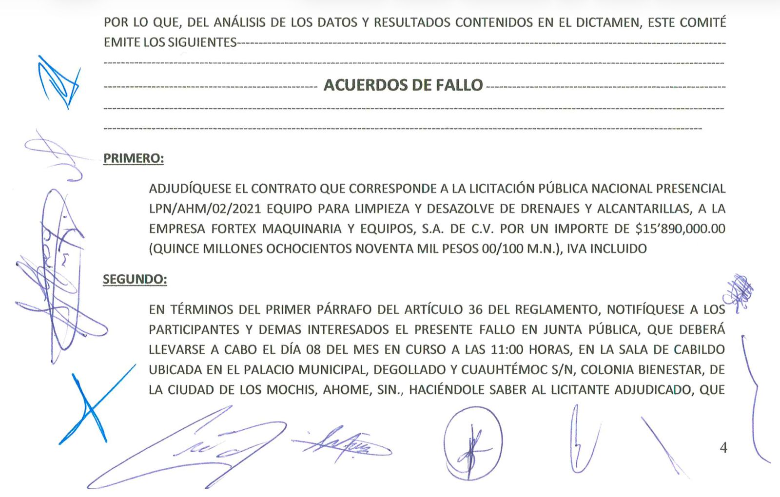 Copia de pantalla al fallo de la licitación que se auditará de manera forense. Fuente: Compranet Sinaloa