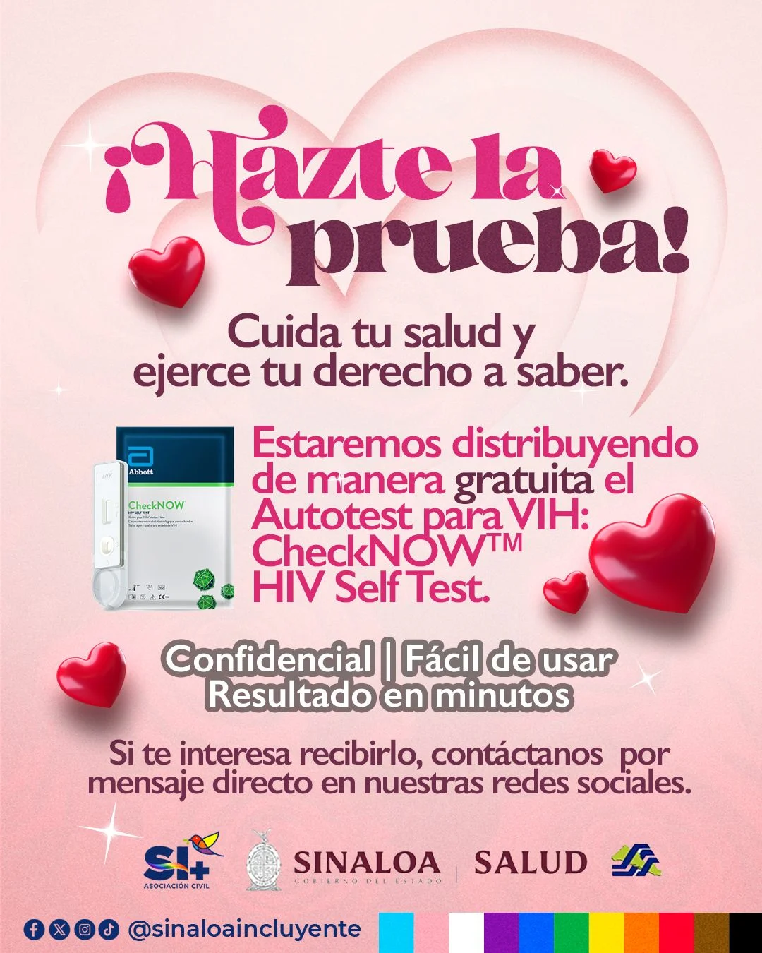 Culiacán, Sinaloa.- Con el objetivo de facilitar el acceso al diagnóstico oportuno de VIH y combatir la desinformación y el estigma, en Culiacán se está impulsando la campaña “Hazte la Prueba”, una iniciativa de la asociación civil Sinaloa Incluyente.