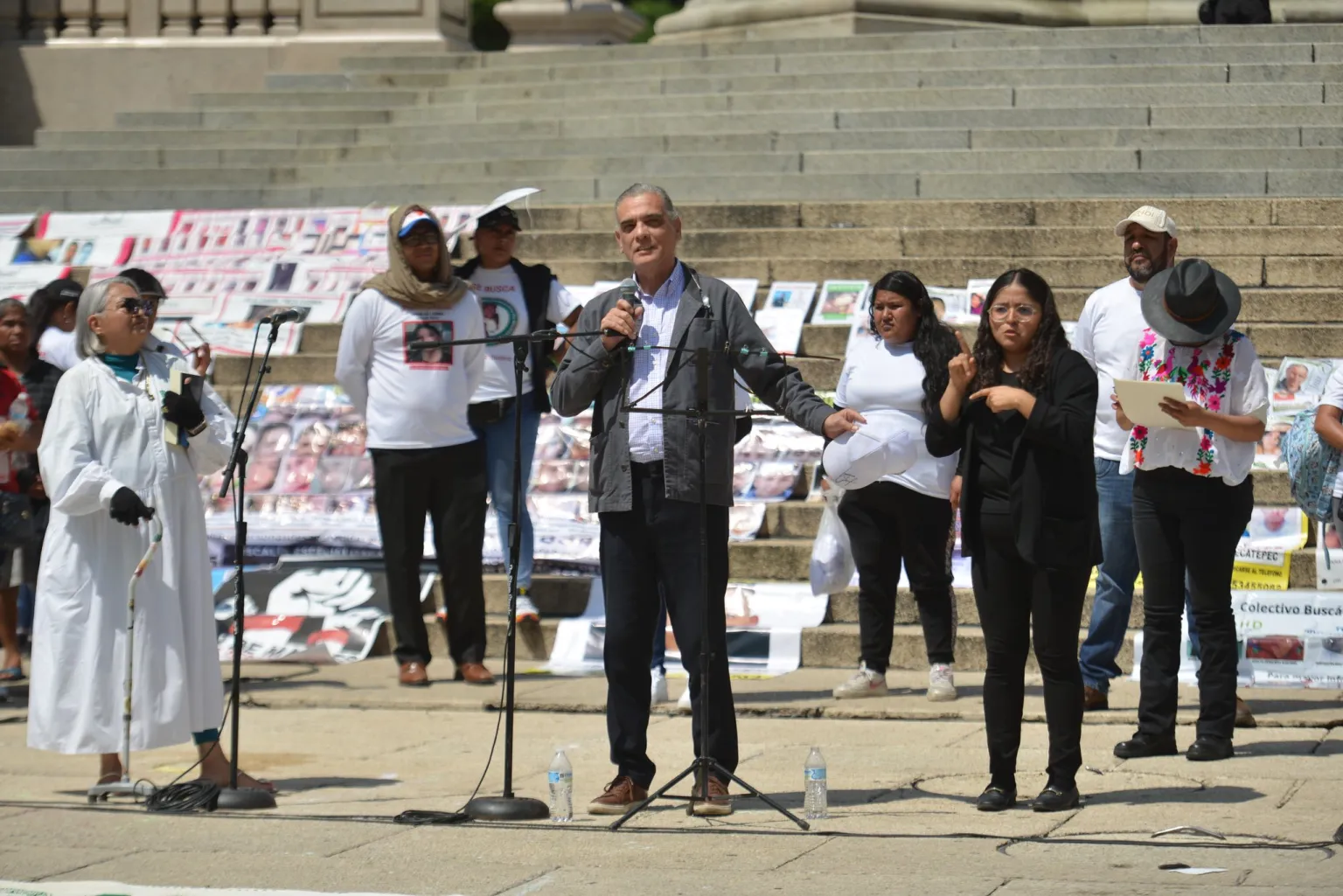 Santiago Corcuera toma la palabra durante un acto de conmemoración del Día Internacional de las Víctimas de Desapariciones Forzadas, realizado en 2024. (X, @Corcuera)