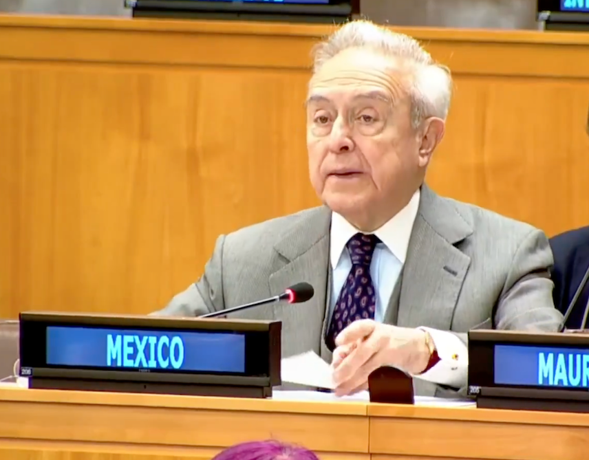 El embajador Héctor Vasconcelos durante su intervención en la Asamblea General de la ONU el pasado octubre. (Captura de pantalla, X, @Hvasconcelos)