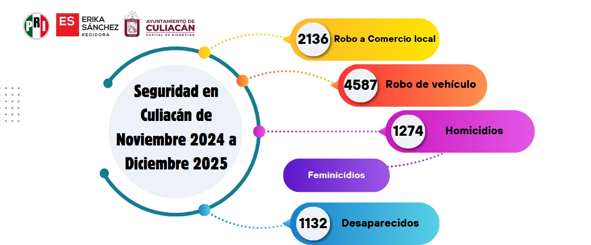 Desde el 9 de septiembre de 2024, gran parte del territorio estatal ha sido escenario de hechos de alta violencia relacionados con una guerra interna entre cárteles del crimen organizado, que ha dejado un saldo elevado de delitos de alto impacto, entre los que la regidora destaca mil 274 homicidios y mil 132 desapariciones.