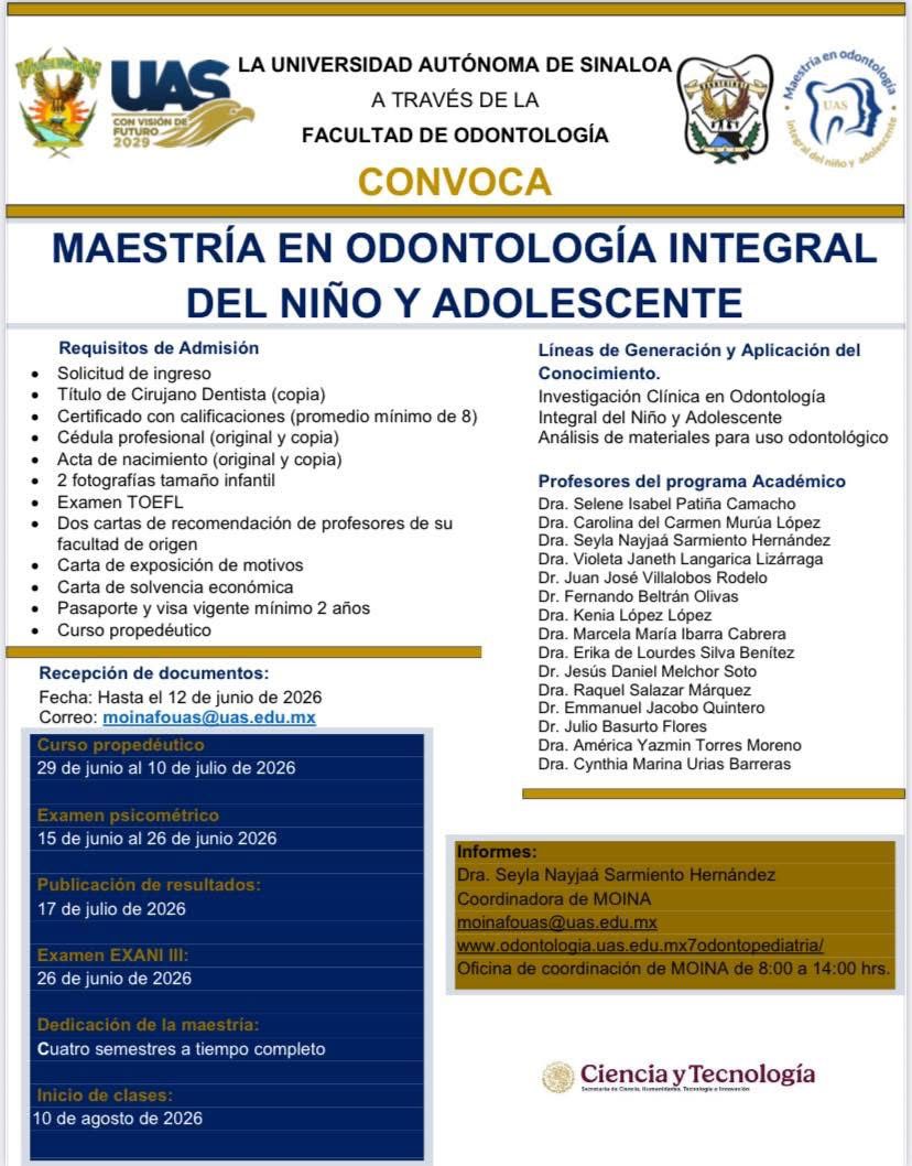 Culiacán, Sin.- El cuidado dental en niños y adolescentes es de suma importancia en la actualidad para prevenir caries y enfermedades de las encías. Debido a que la caries es la enfermedad infantil crónica más común, resulta crucial formar cuadros especializados que atiendan a este sector de la población. Por tal motivo, la Facultad de Odontología de la Universidad Autónoma de Sinaloa (UAS) convoca a una edición más de su Maestría en Odontología Integral del Niño y el Adolescente, según informó la doctora Seyla Sarmiento Hernández.