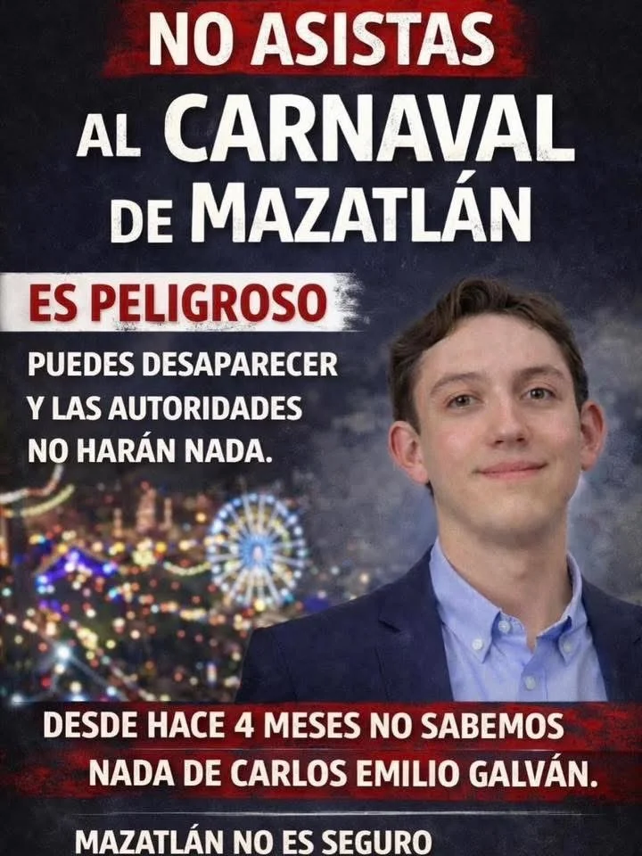 Brenda Valenzuela Gil, madre de Carlos Emilio Galván, realizó un comunicado en sus redes sociales en el que pedía que no se apoyara el Carnaval de Mazatlán y describía como peligroso visitar el municipio.