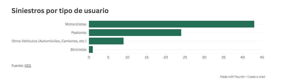 Según datos publicados por el IIEG, el cruce entre Periférico Sur con Avenida Jesús Michel González ha concentrado: 77 siniestros, con 19 personas fallecidas, 128 lesionadas, y un total de 222 individuos involucrados.
