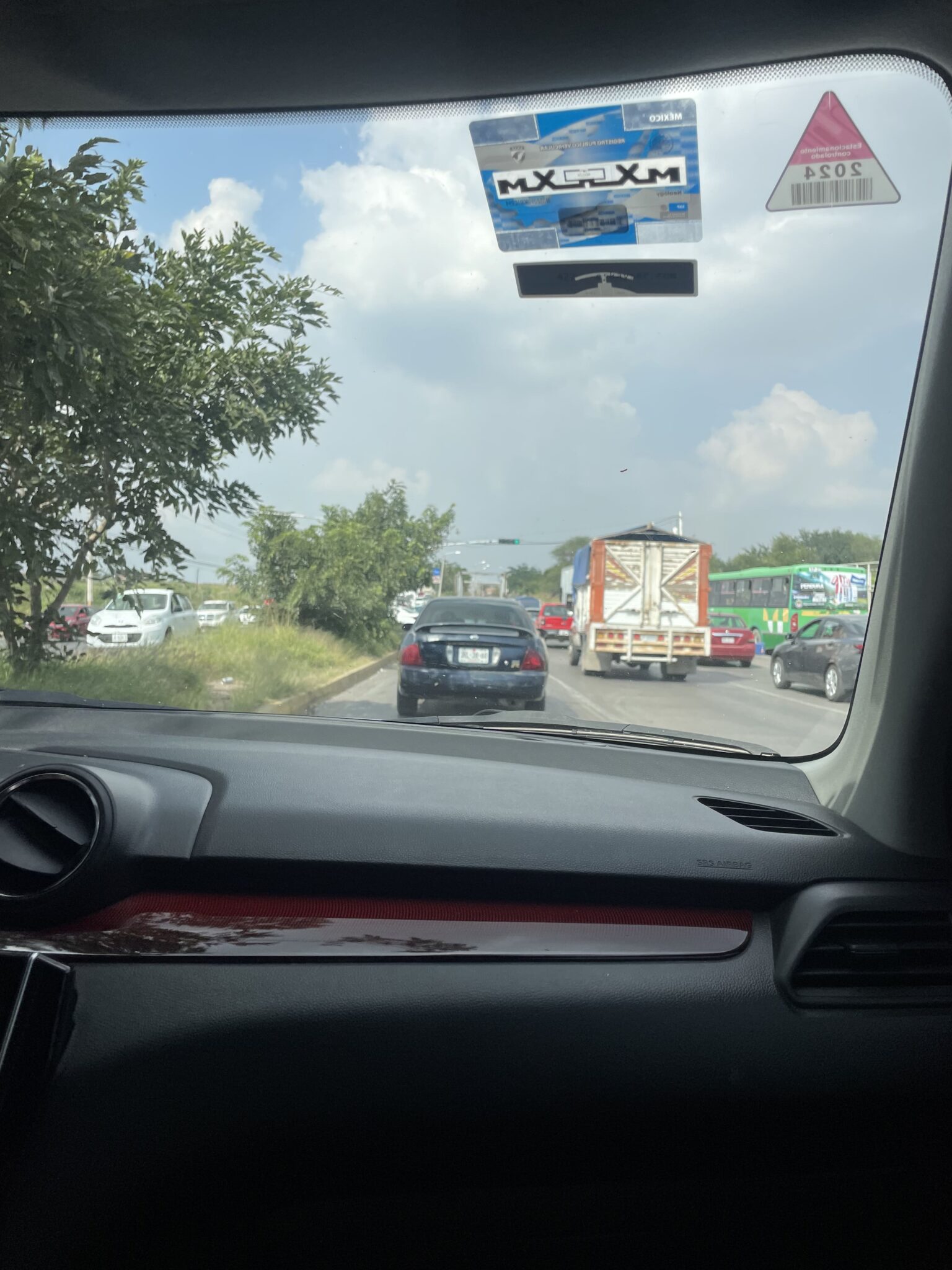 Vista cotidiana al tráfico desde el interior de un automóvil que circula por esta avenida.